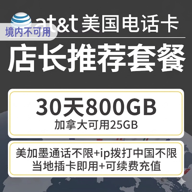 att美国北美通用电话卡4G上网手机卡可选2g无限流量卡可选15天