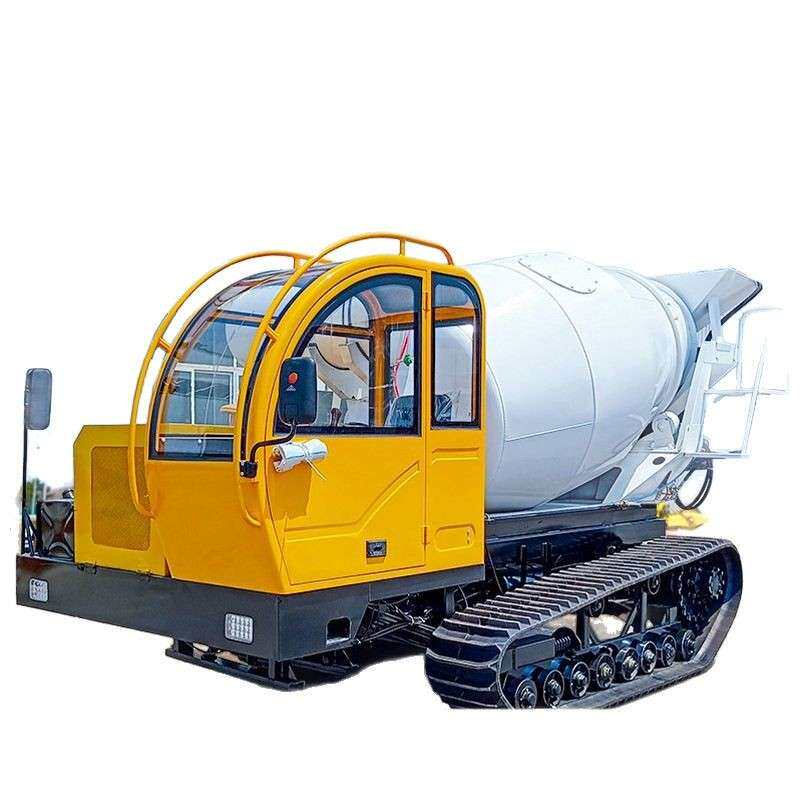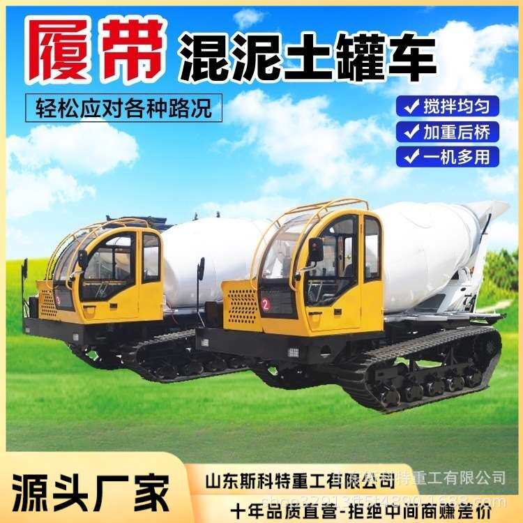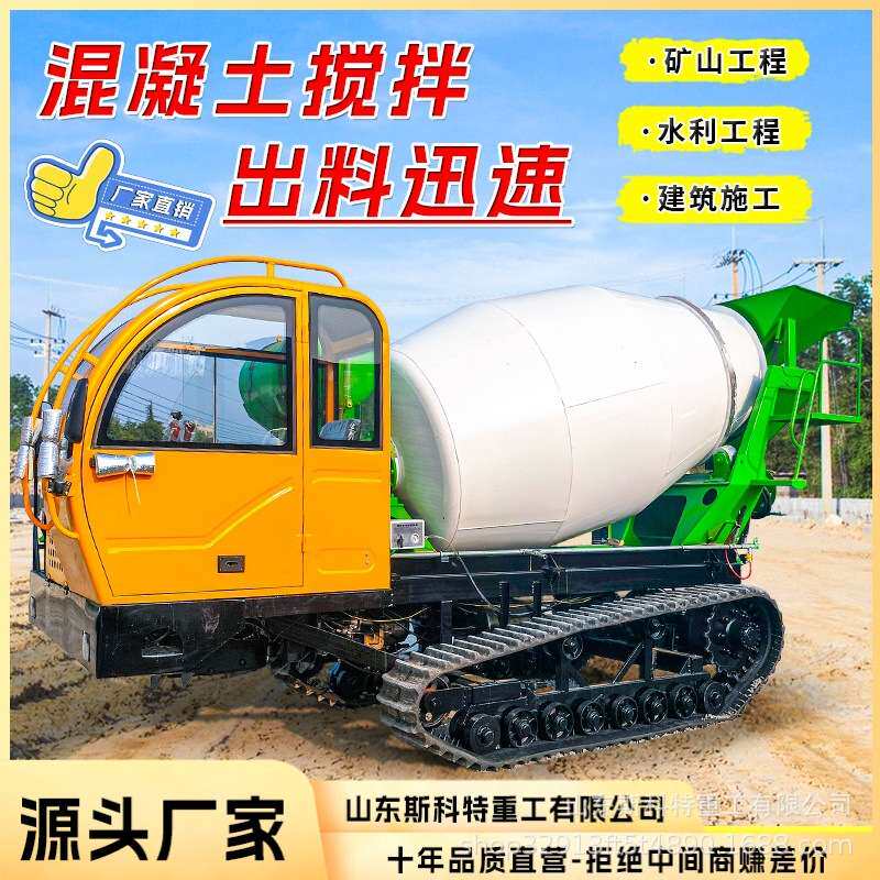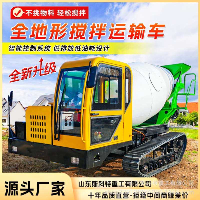全地形自动出料混凝土运输搅拌朝天锅价格平口爬山虎履带搅拌车