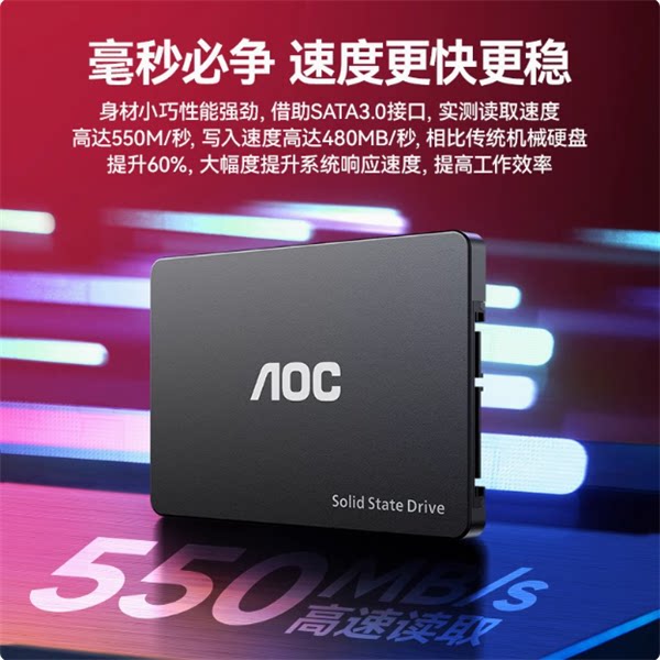 AOC冠捷固态硬盘1T 512G 256G 128G台式机笔记本sata3.0电脑ssd