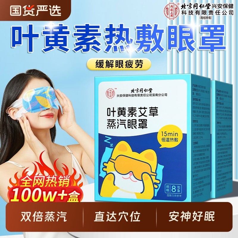 北京同仁堂蒸汽眼罩叶黄素艾草热敷缓解疲劳护眼贴黑眼圈睡眠精油