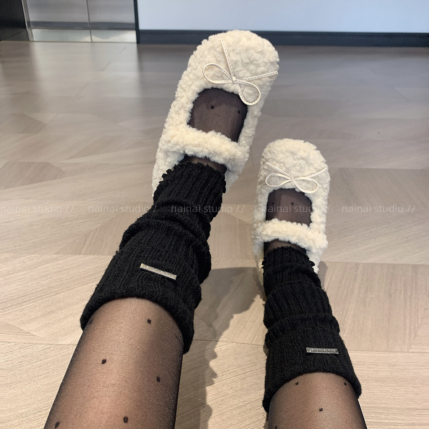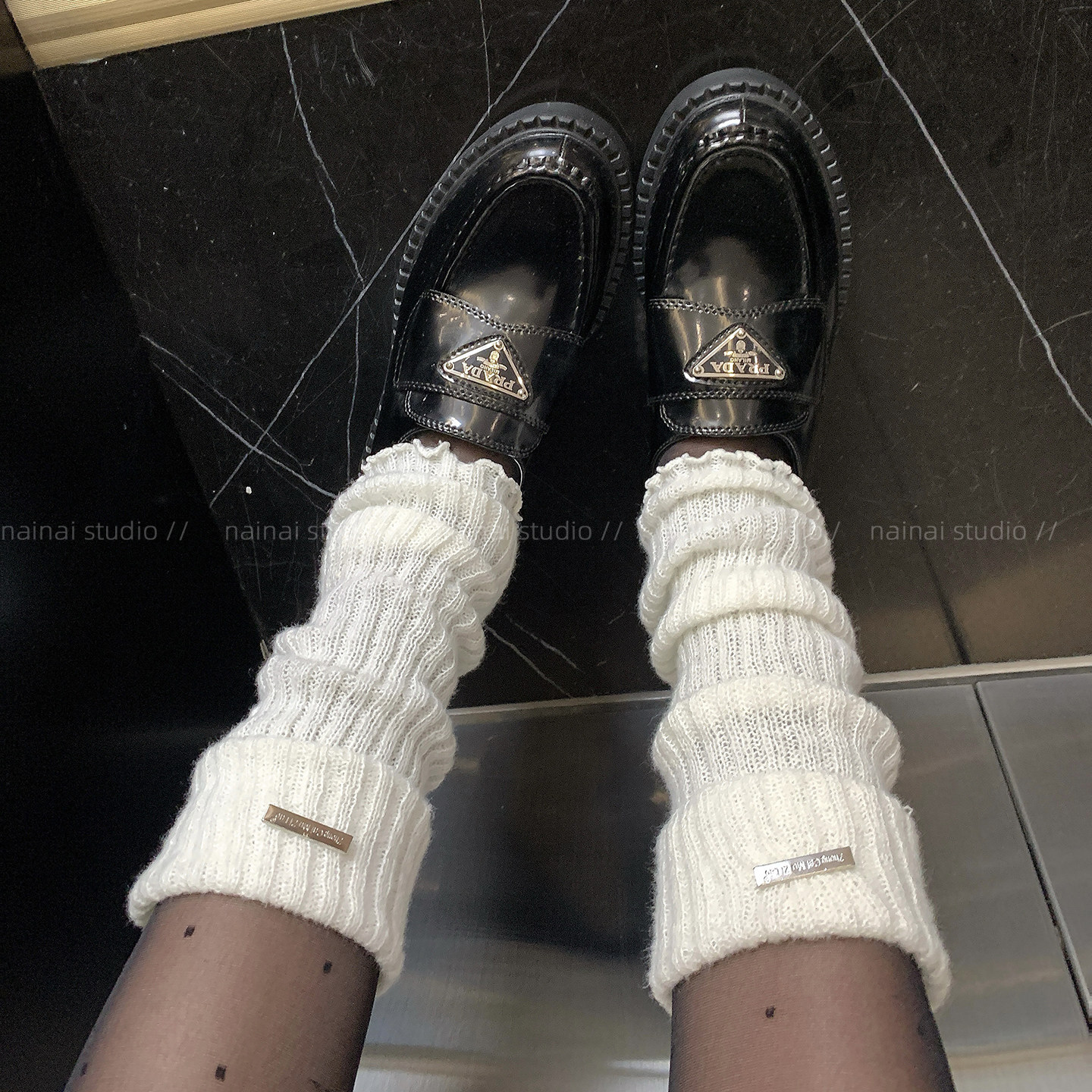 金属标袜套~灰色中筒袜腿套保暖堆堆袜秋冬y2k辣妹纯色小腿袜子女