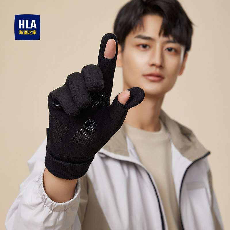 海澜之家布艺手套女士德绒秋冬男士骑行户外露指触屏2025新款