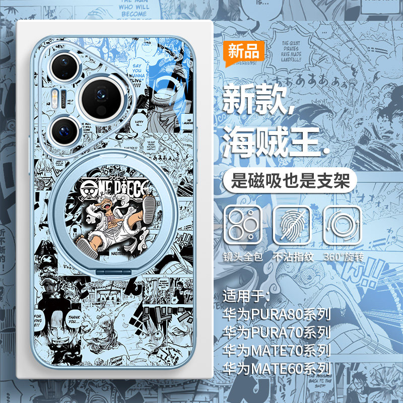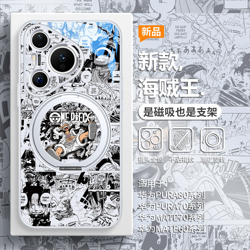 5档尼卡路飞手机壳适用华为pura80磁吸带支架pura70ultra海贼王新款mate70pro小众高级感mate60pro支点壳全包