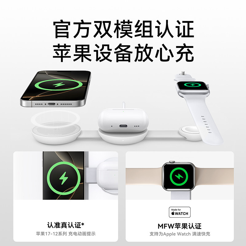 Anker安克小飞碟15W三合一无线充充电器认证适用苹果17手机iPhone16Pro15Apple Watch手表iwatch
