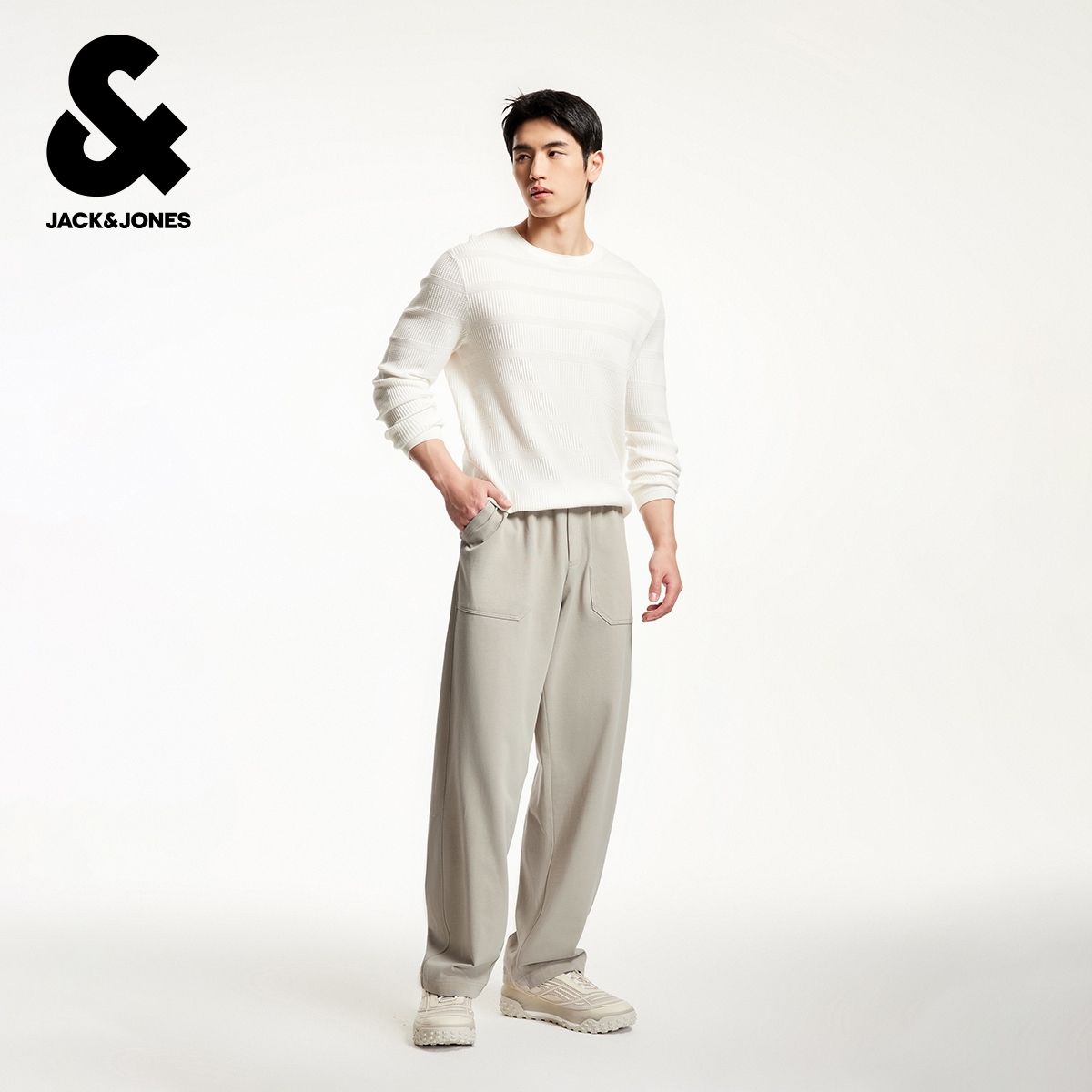杰克琼斯秋季精致刺绣可调节抽绳舒适百搭纯色宽松裤子休闲裤男装
