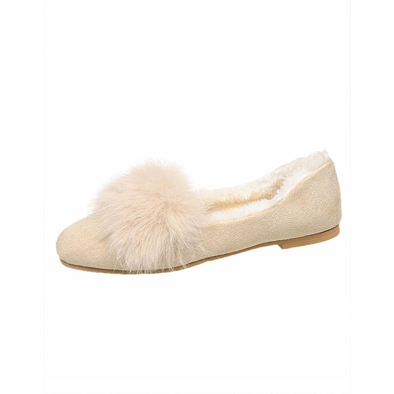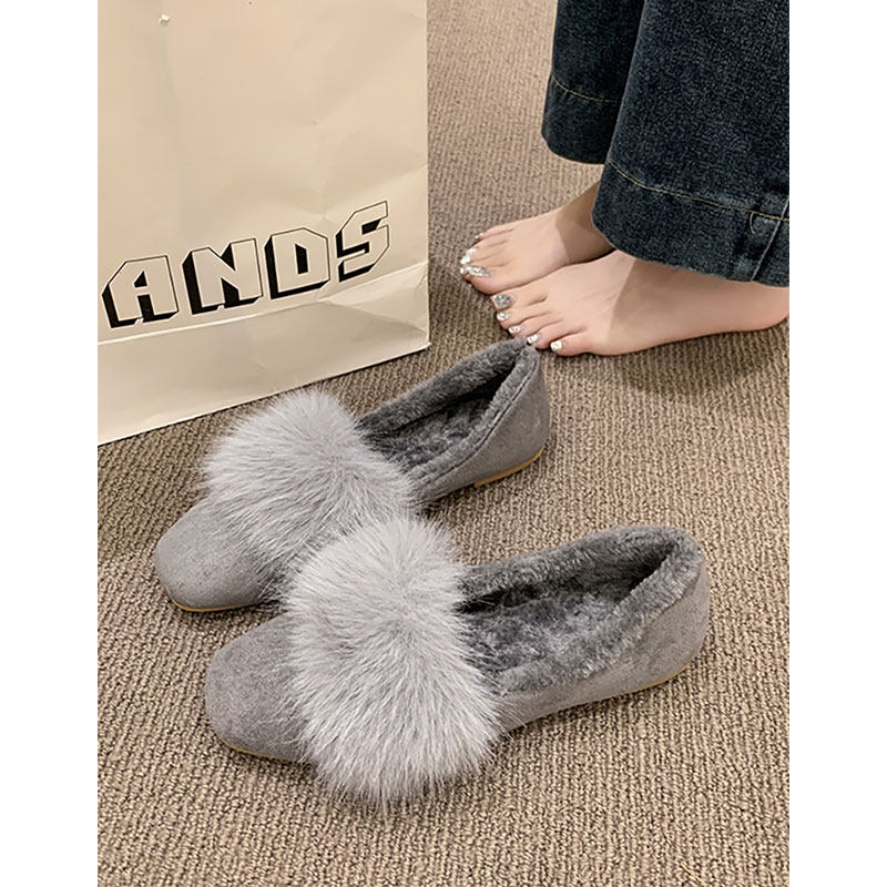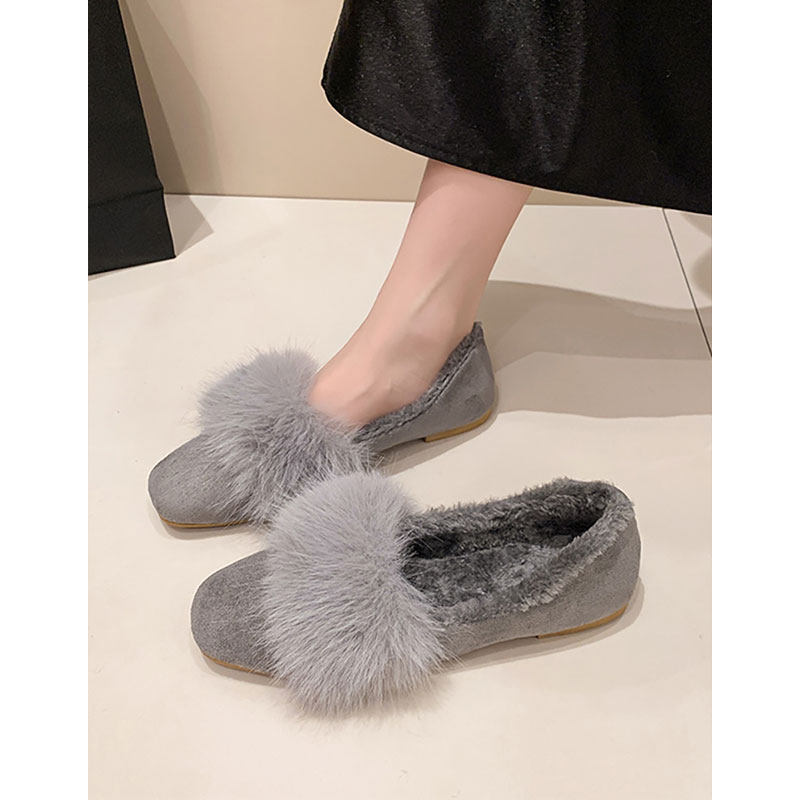 羊皮版复古玛丽珍鞋女方头秋冬季加绒保暖毛毛棉鞋平底晚晚单鞋女