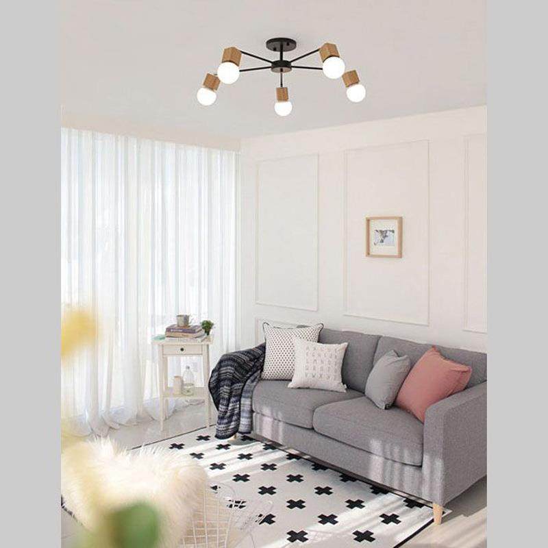 北欧简约实木LED餐厅吸顶灯灯客厅卧室书房创意多头吸吊两用灯具
