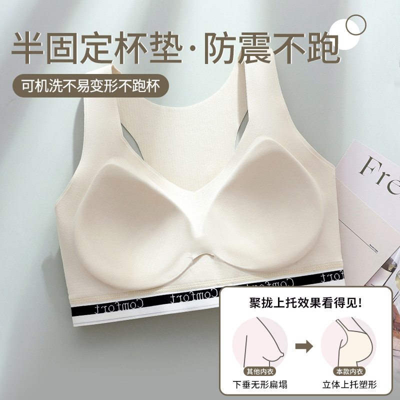 无痕内衣女小胸聚拢夏季薄款运动一体美背心式固定杯无钢圈文胸罩