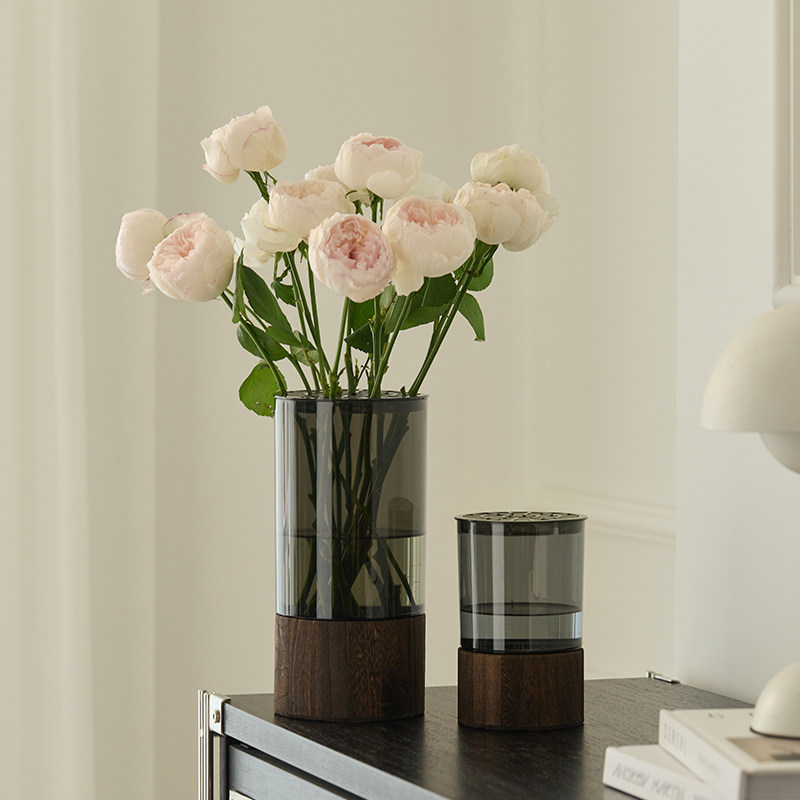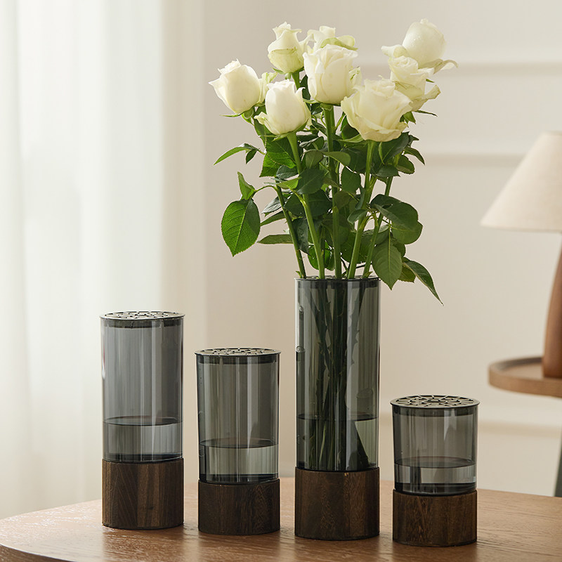 简约现代中古小众玻璃花瓶黑色水养鲜花客厅创意高级装饰插花摆件