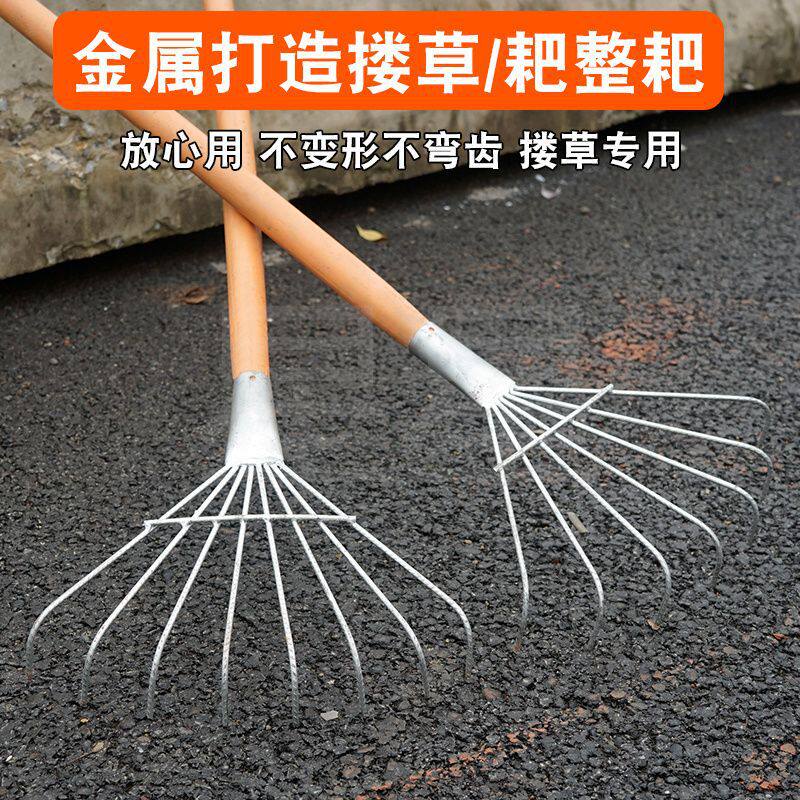 家用搂草耙子农用铁耙耙齿七齿钉耙农具翻土松土扒草铁抓爬子草耙