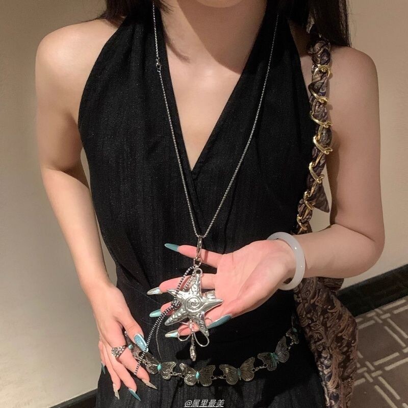 波西米亚复古海星吊坠项链女海边度假民族风锁骨链长款配饰毛衣链