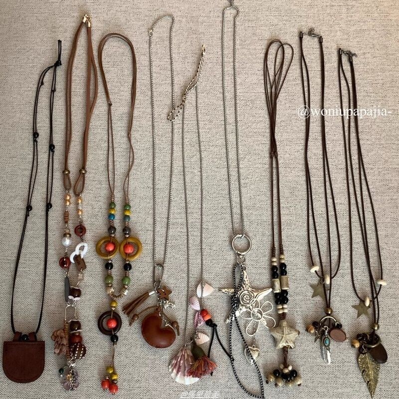 美拉德波西米亚叠戴毛衣项链女棕色复古穿搭choker锁骨链高级配饰