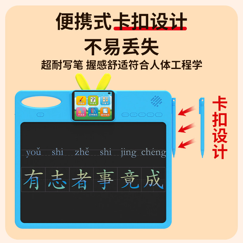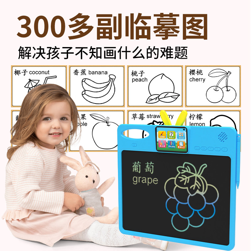 新升级智能AI学习儿童画板笔画拼音英语早教机幼儿园电子双屏可擦消除的幼儿磁性彩色写字板学练机液晶画画