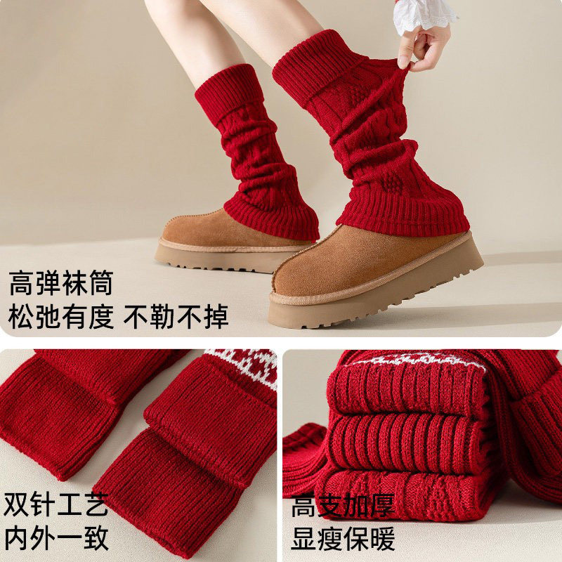 2026新款安可拉红色袜套堆堆袜小腿袜子女长筒腿套秋冬加厚护腿