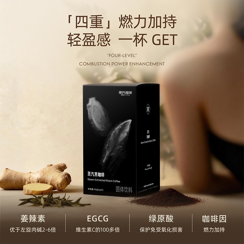 摩氏蒸汽黑咖啡燃特浓学生上班族防困提神健身0蔗糖0脂肪速溶黑咖