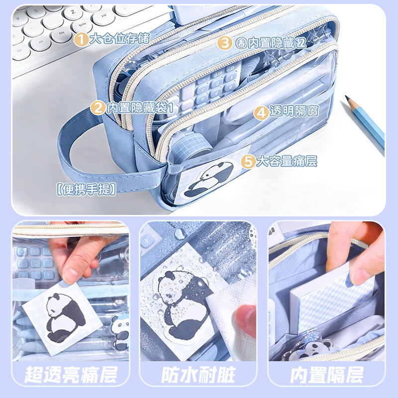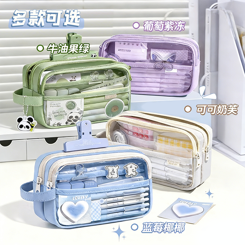 高颜值五层透明线条小狗笔袋女生小学生女孩文具铅笔盒小众不撞款