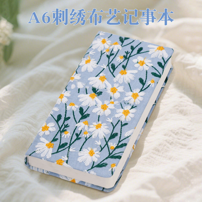 小笔记本随身口袋本手帐本布料封面小雏菊文艺刺绣日记本小碎花布面笔记本高颜值手账空白本子便携横线手账本