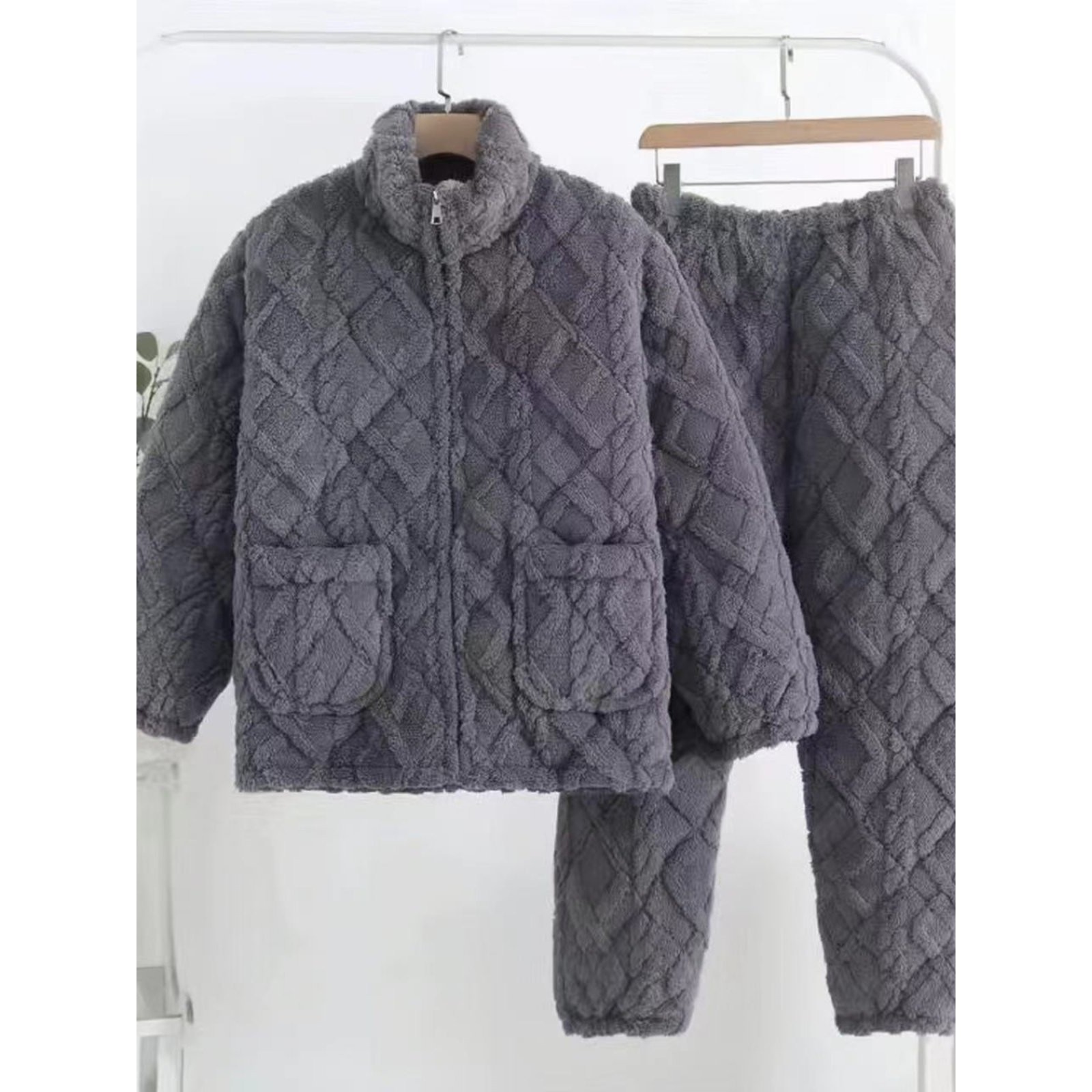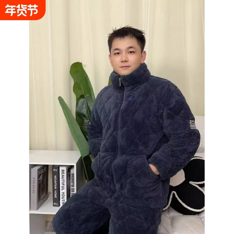 冬季珊瑚绒男士睡衣三层夹棉加厚加绒法兰绒秋冬款家居服保暖套装