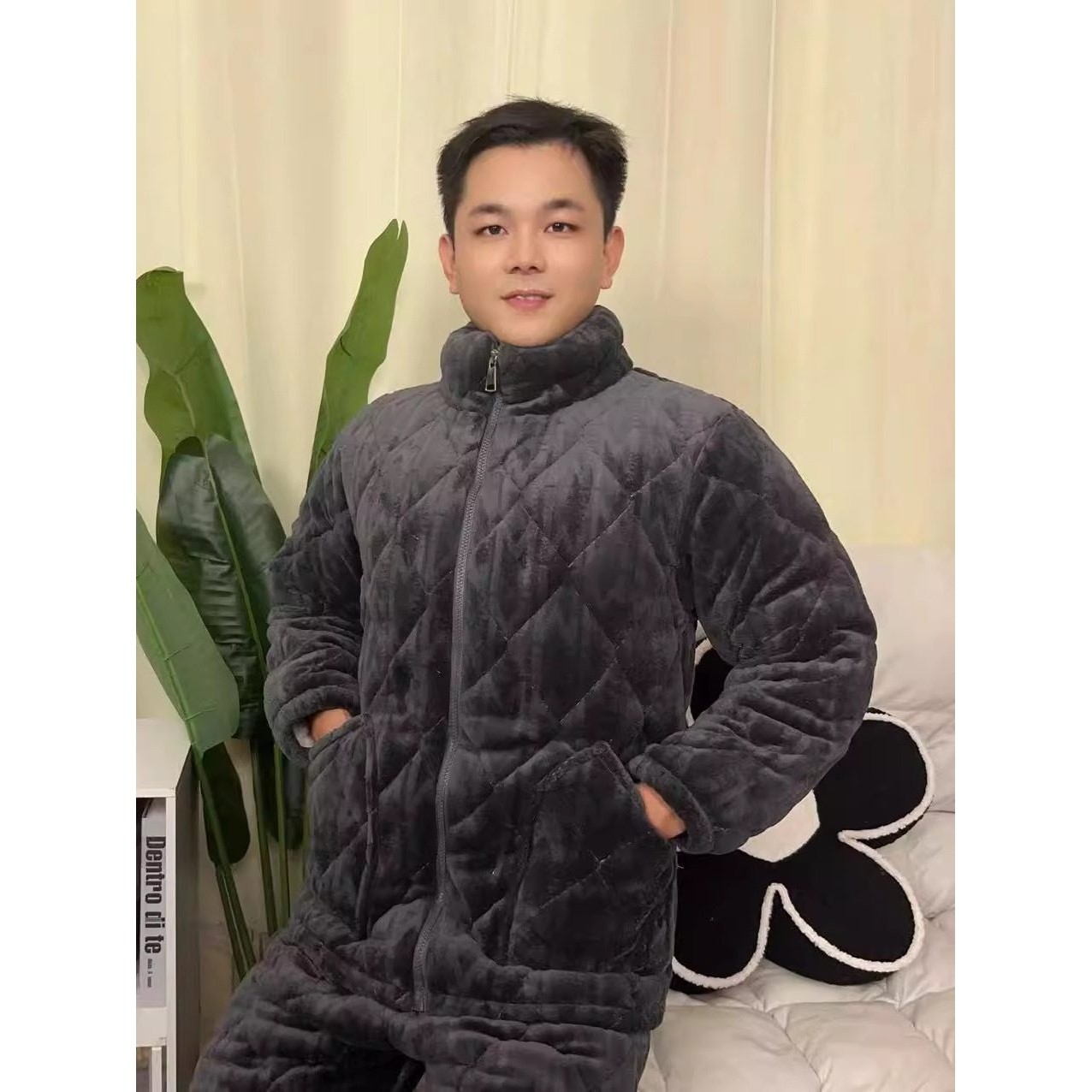 男士睡衣冬季珊瑚绒三层夹棉加厚加绒男款青少年2025年新款家居服