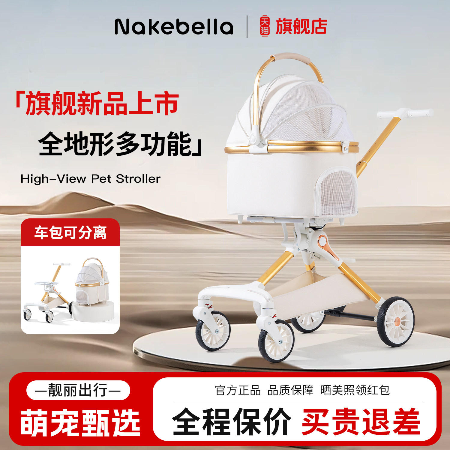 Nakebella宠物推车狗狗外出轻便可折叠分离遛狗车猫包手推狗拉车