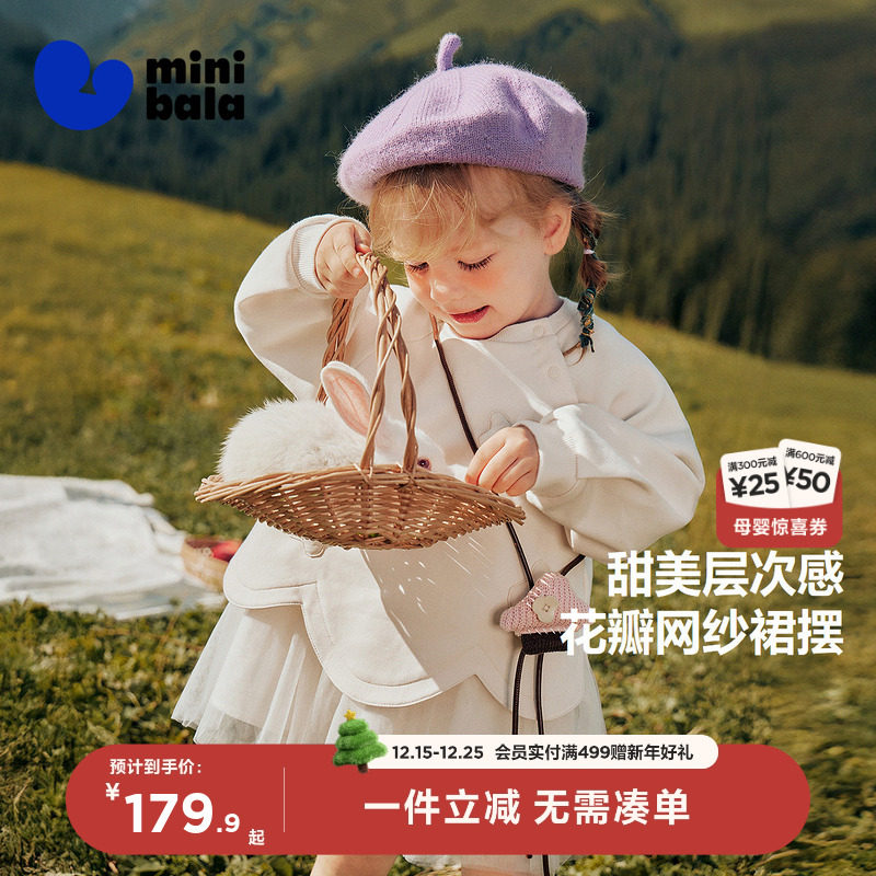 迷你巴拉巴拉女童儿童网纱公主连衣裙宽松柔软拼接裙子2025秋新款