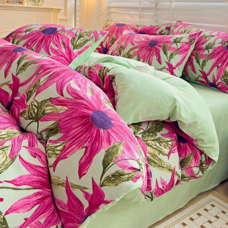 水洗棉麻四件套双层纱被套宿舍床单三件套家用床品床笠