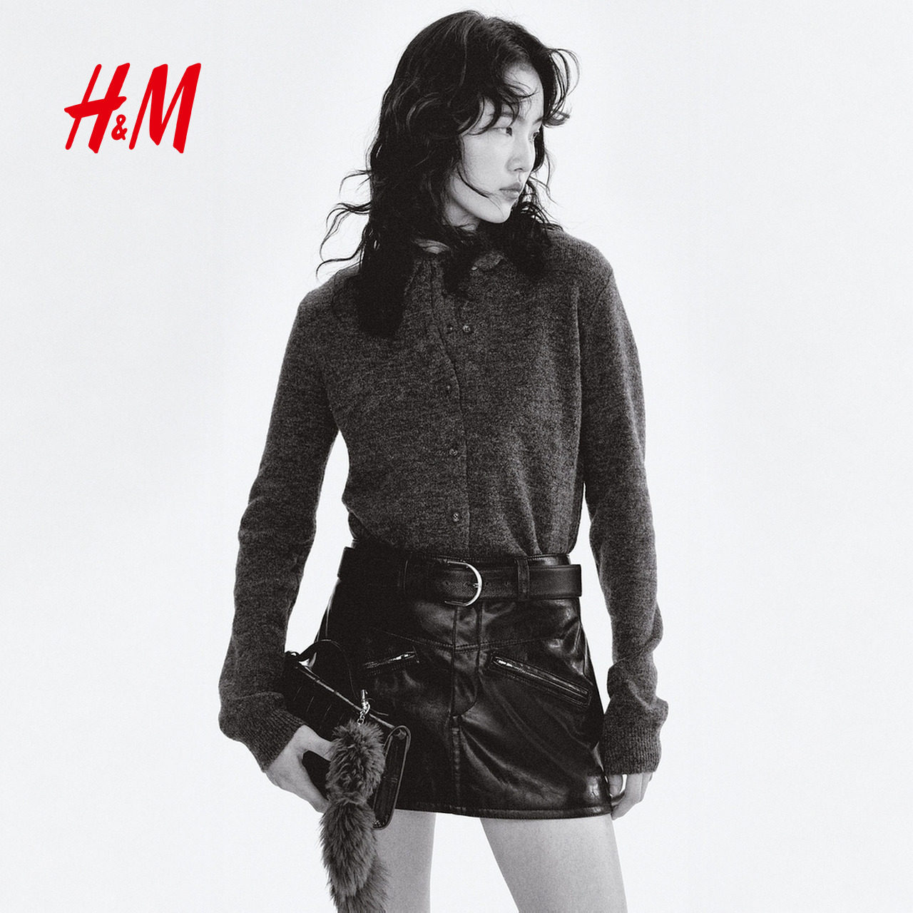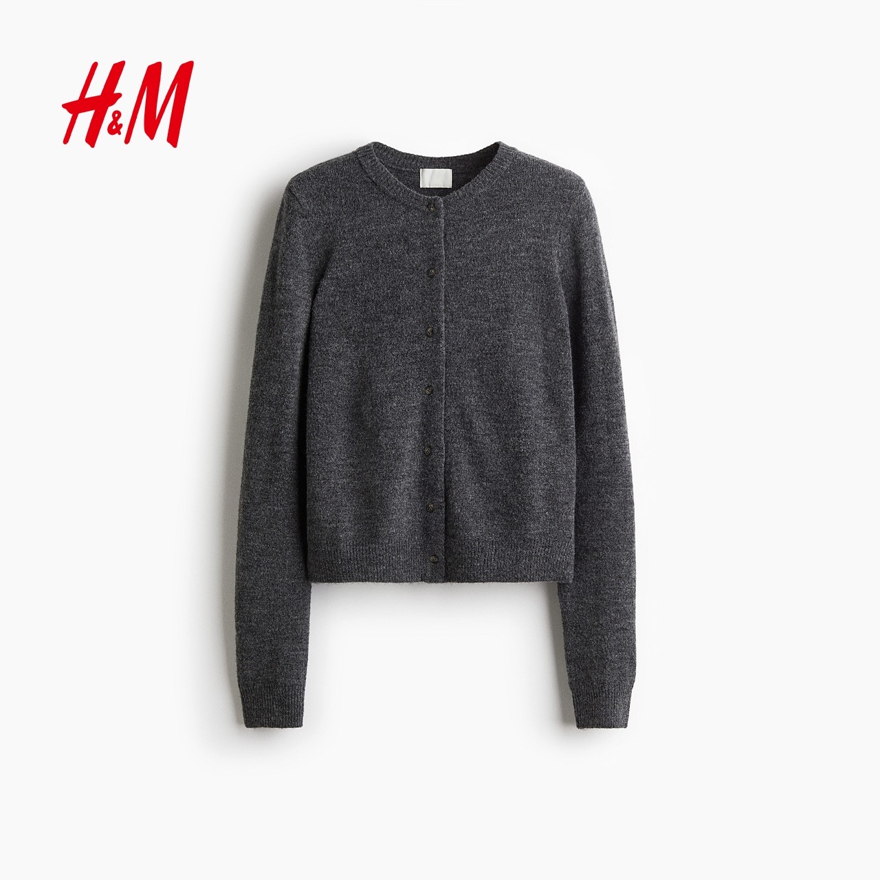 HM女装毛针织衫2025冬季雅致打底衫长袖短款圆领miu系开衫1246581
