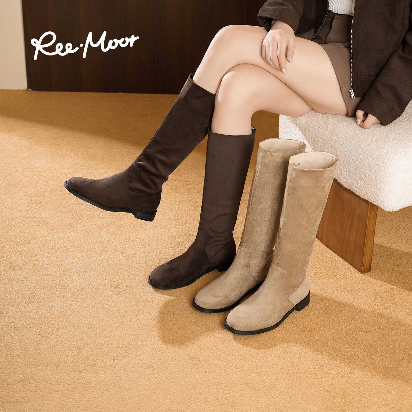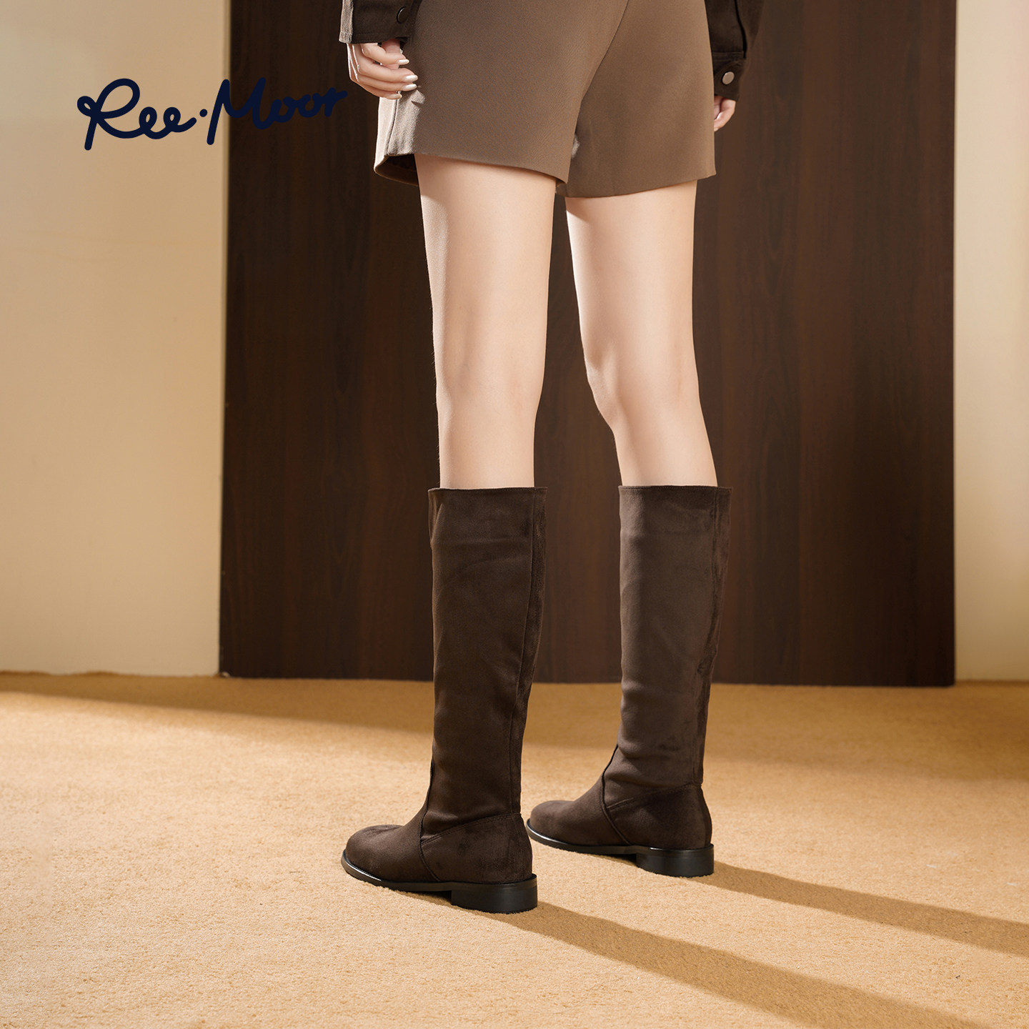 REEMOOR睿慕2025冬季新款粗跟骑士靴厚底增高时装靴高筒靴女