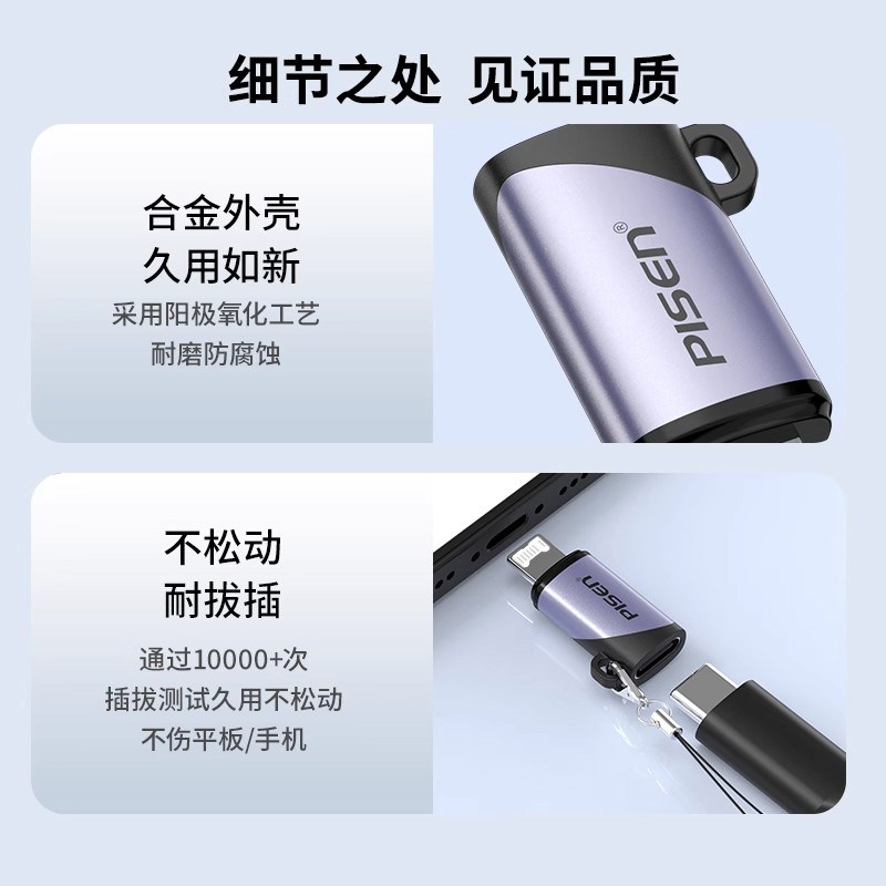 品胜typec转lightning转接头otg接口数据线适用苹果手机iphone8-14转接耳机转换器ipad平板外接读卡器U盘网卡