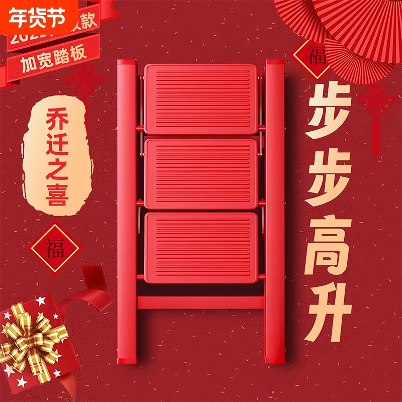 梯子乔迁之喜家用折叠梯加厚人字梯搬家入宅红色步步高升四步楼梯