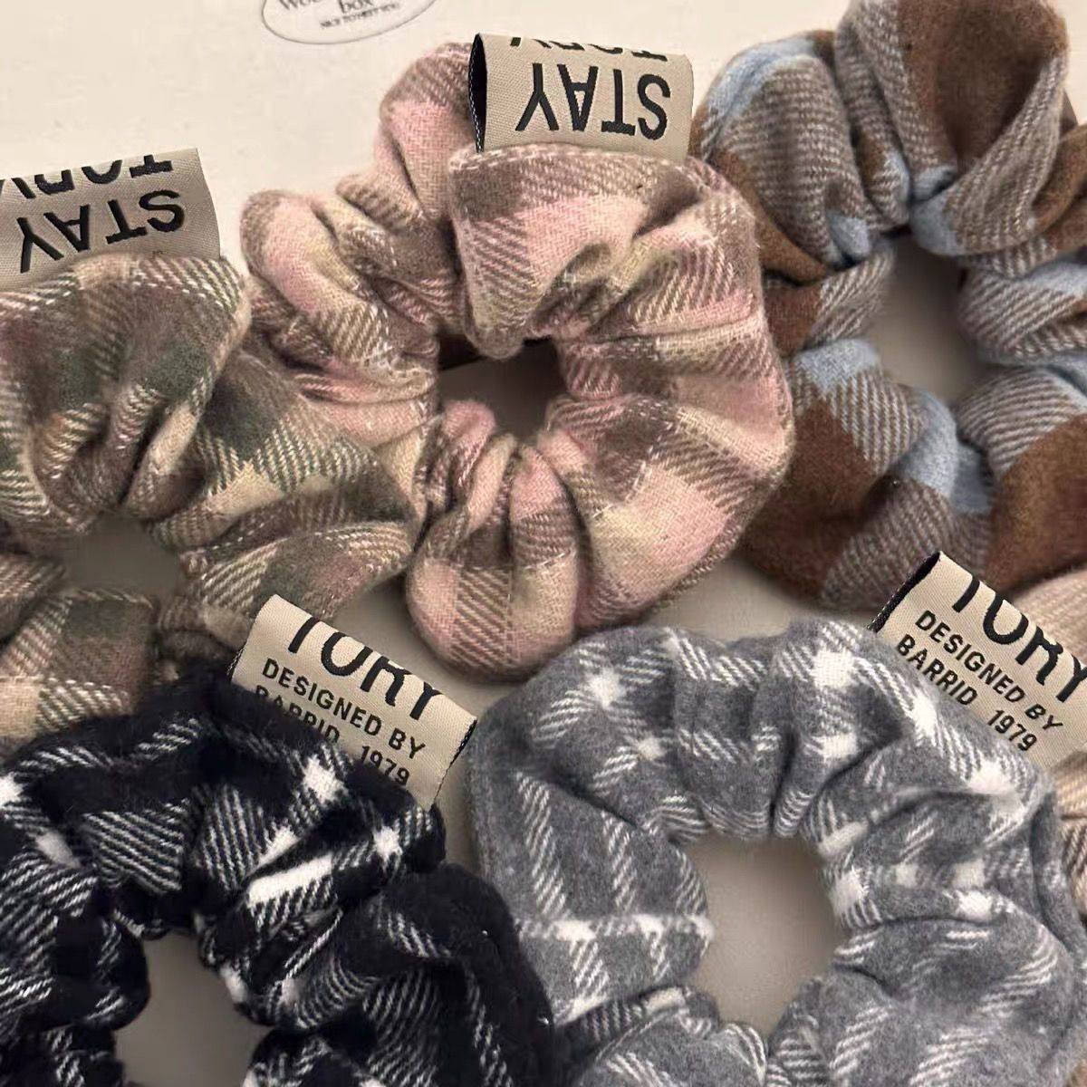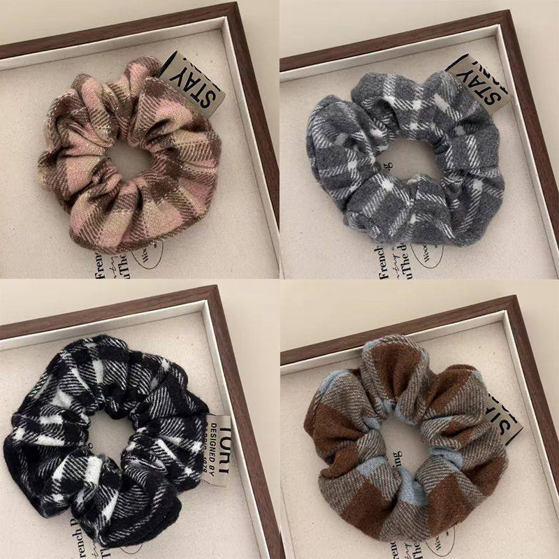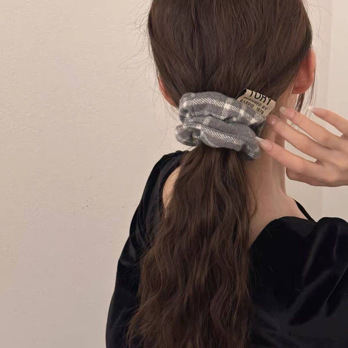 秋冬发饰复古格子大肠发圈学院风丸子头头饰发绳韩版格纹条纹短发