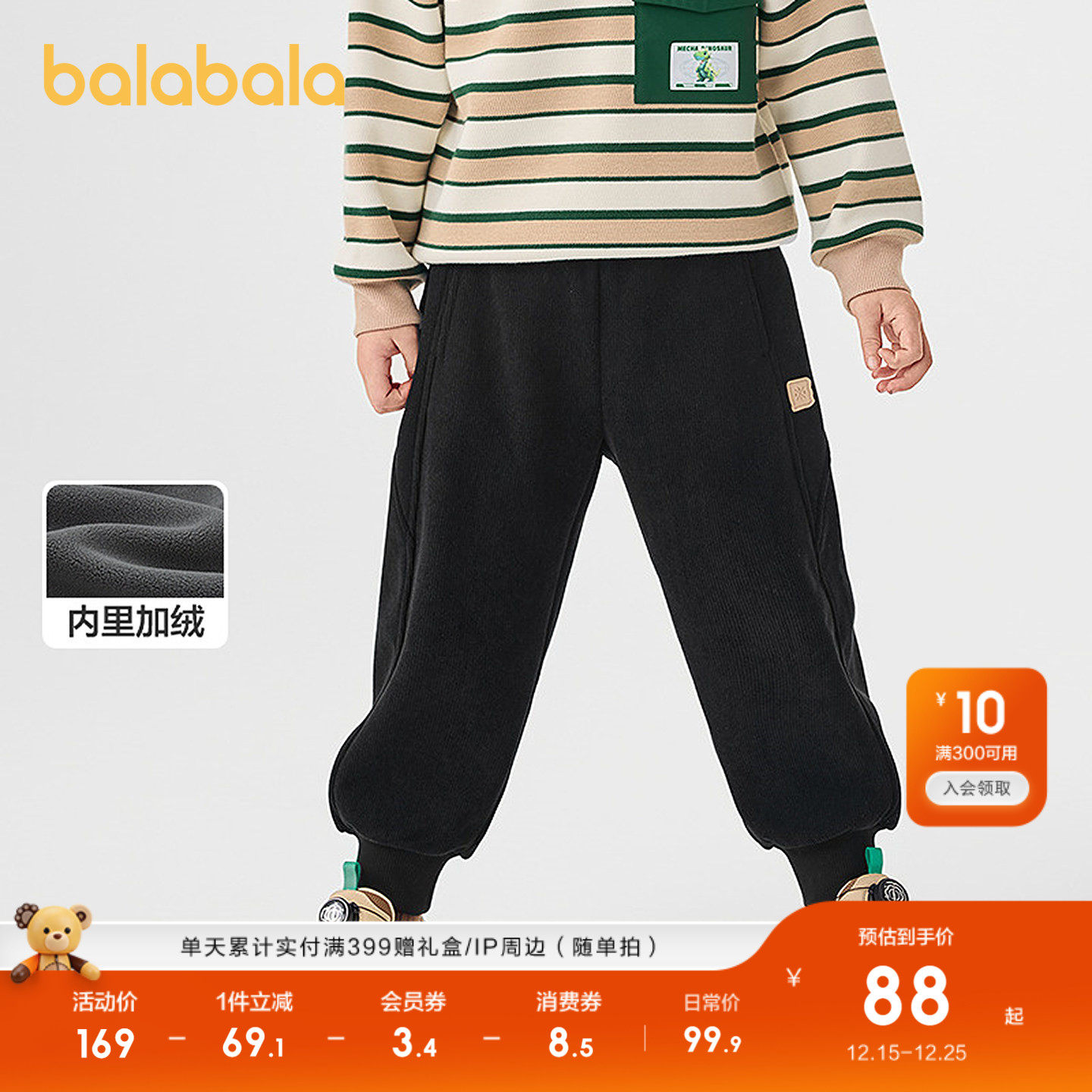 巴拉巴拉童装男童裤子秋冬中大童长裤儿童加绒卫裤保暖休闲运动潮