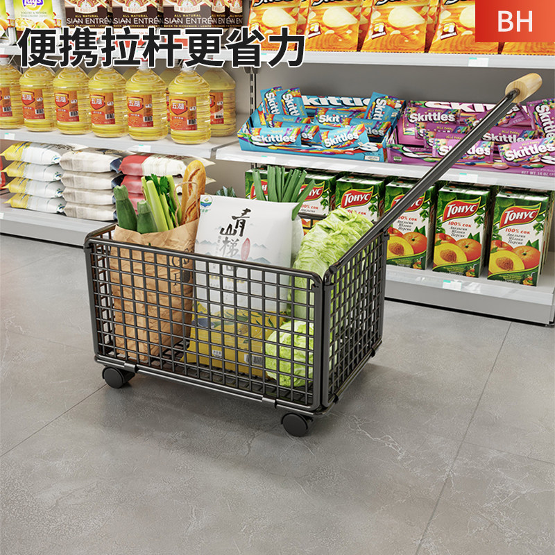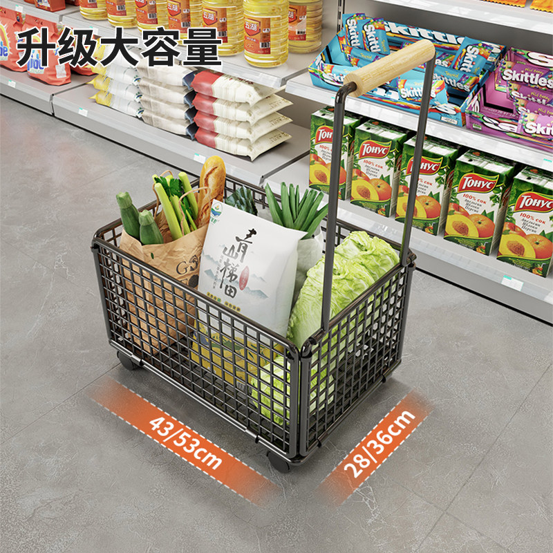 购物小拉车超市购物筐拉杆篮子带滑轮采购篮水果手提篮零食收纳篮