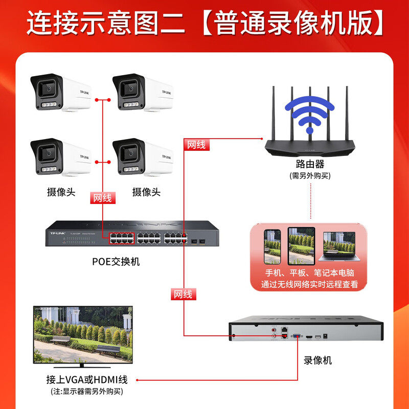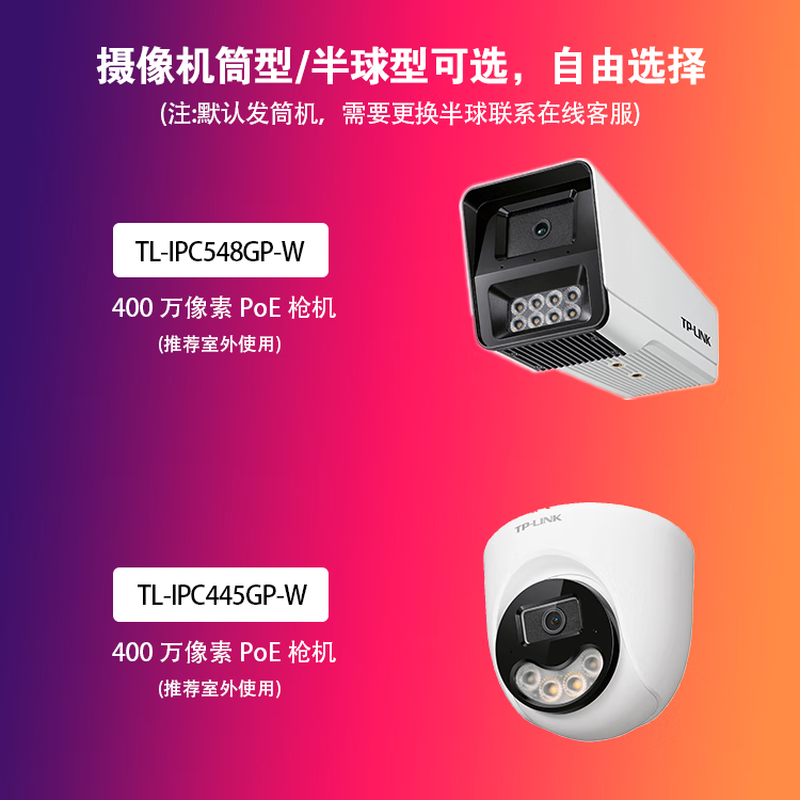 TP-LINK监控套装8路 400万高清POE监控摄像头 16路NVR网络录像机 家用仓库超市室外室内防水 手机远程