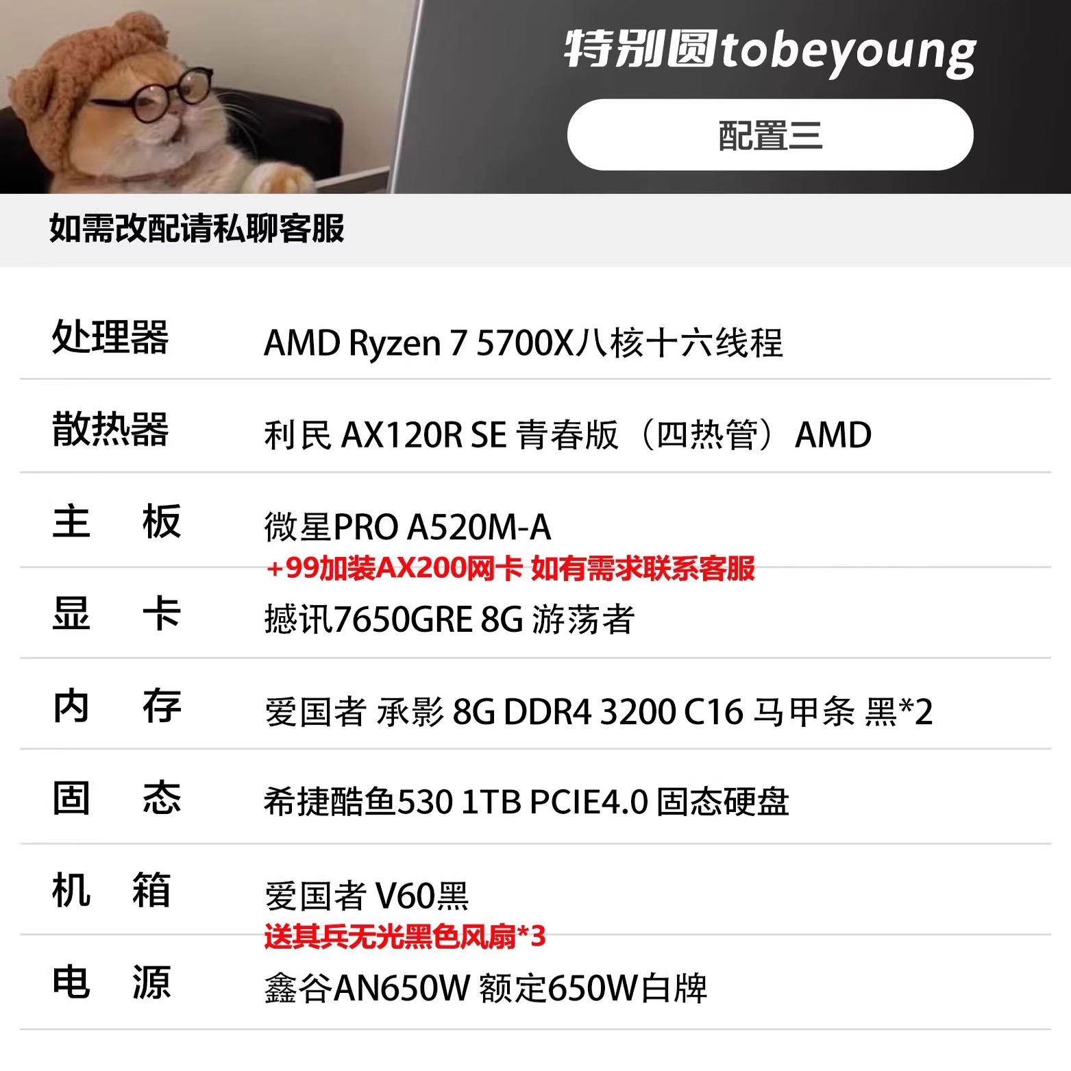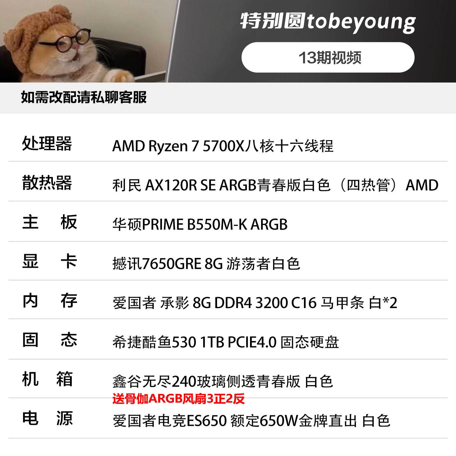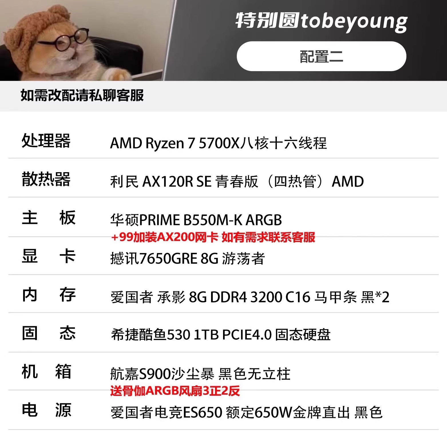 推荐神机 5700X/7650GRE电竞游戏台式DIY电脑主机