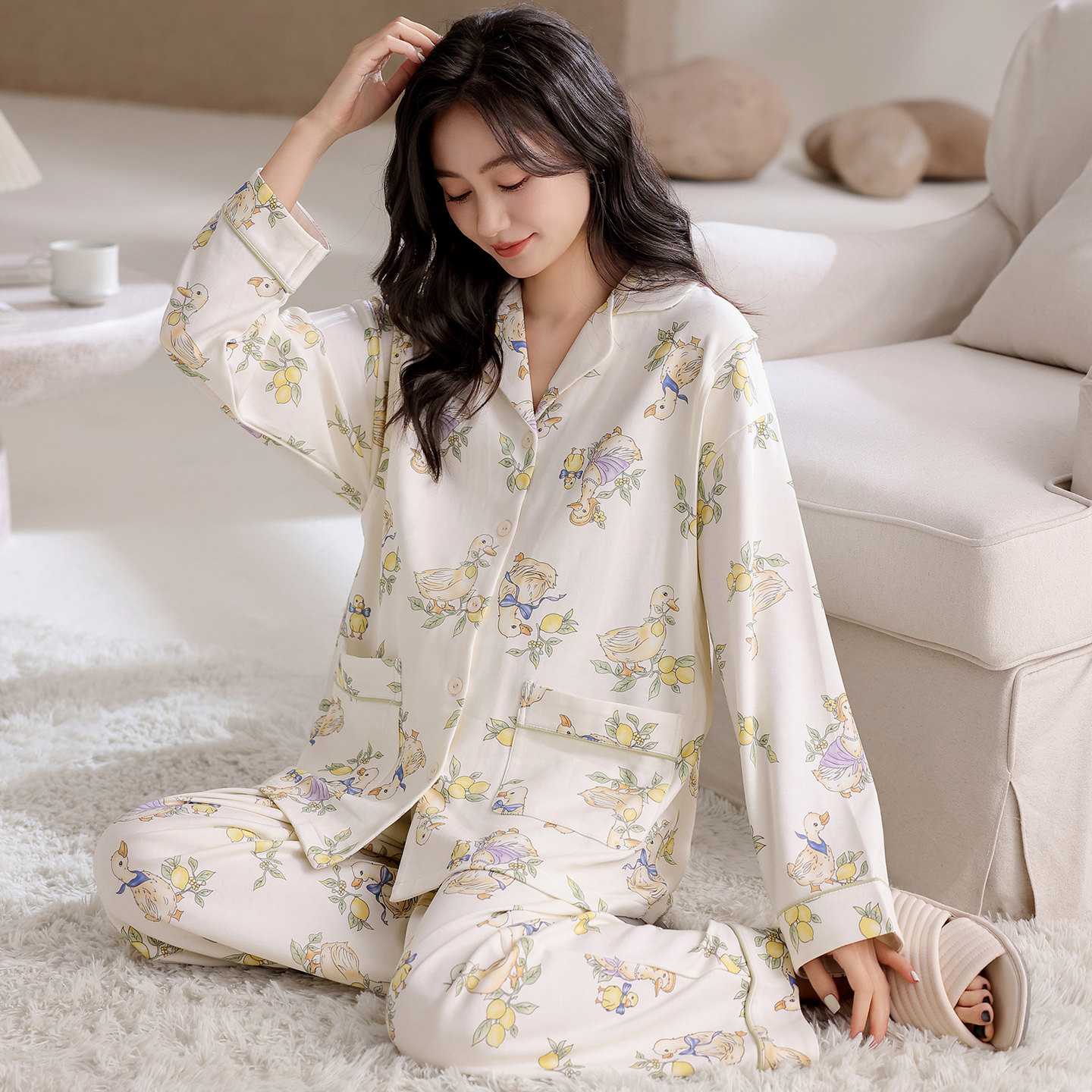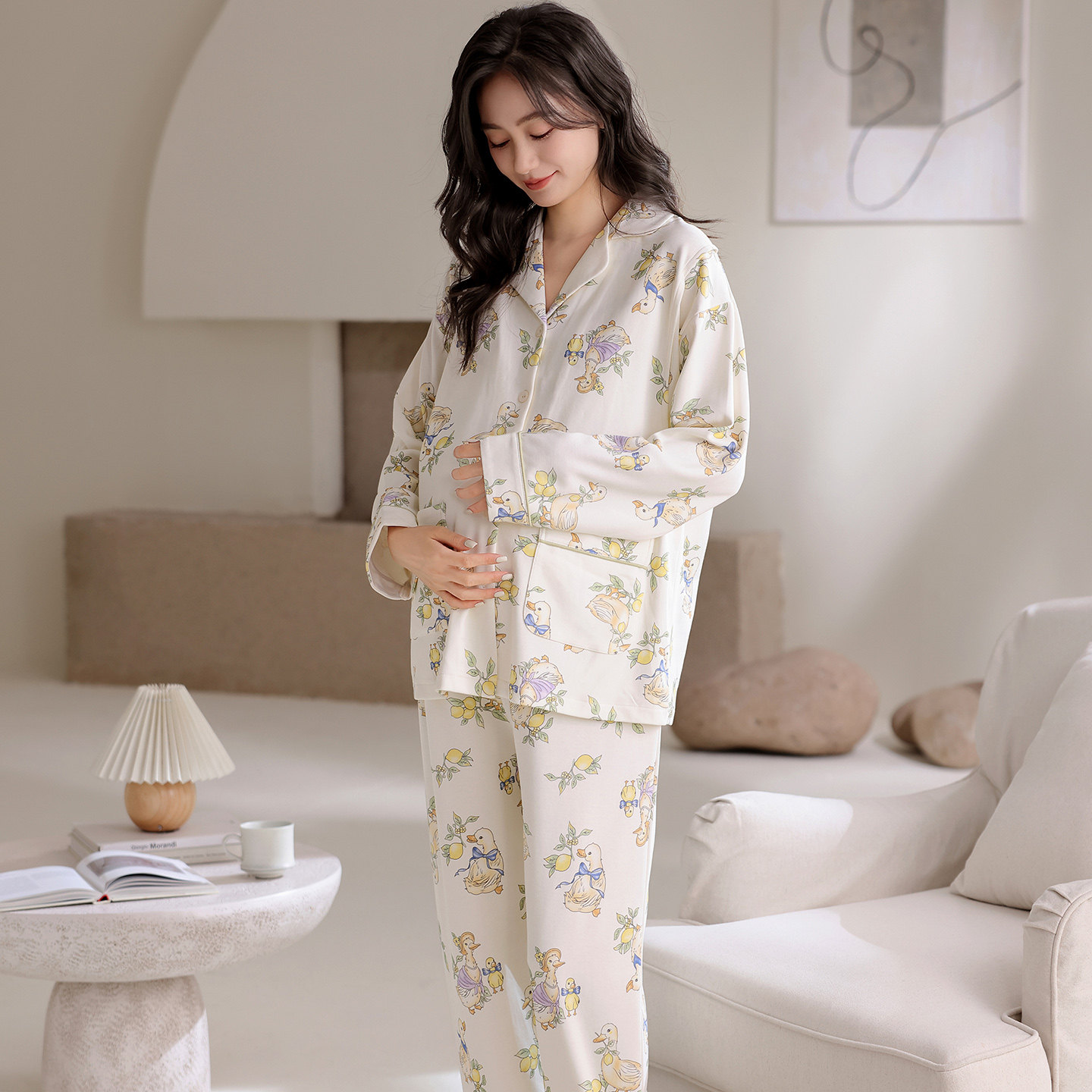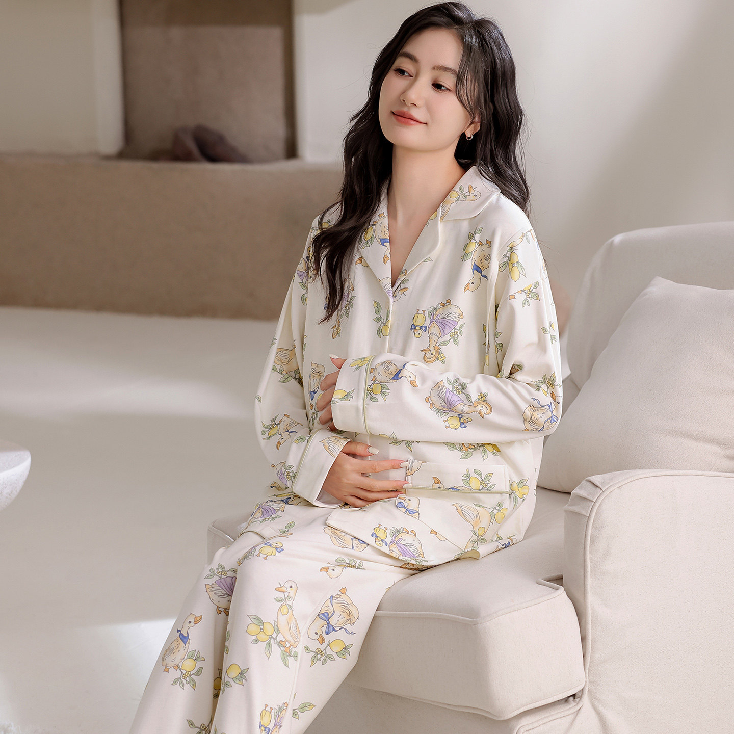 十月结晶兜兜鸭纯全棉吸汗月子服哺乳睡衣7A抗菌12月家居服女冬季