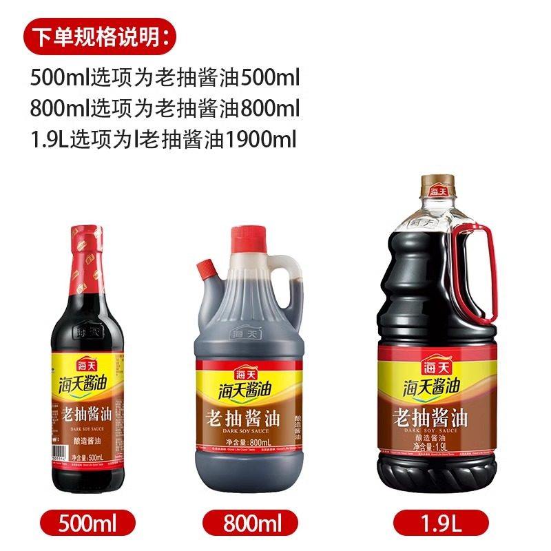海天生抽老抽800ml酿造酱油炒菜红烧上色调味品佐料尝鲜黄豆整箱