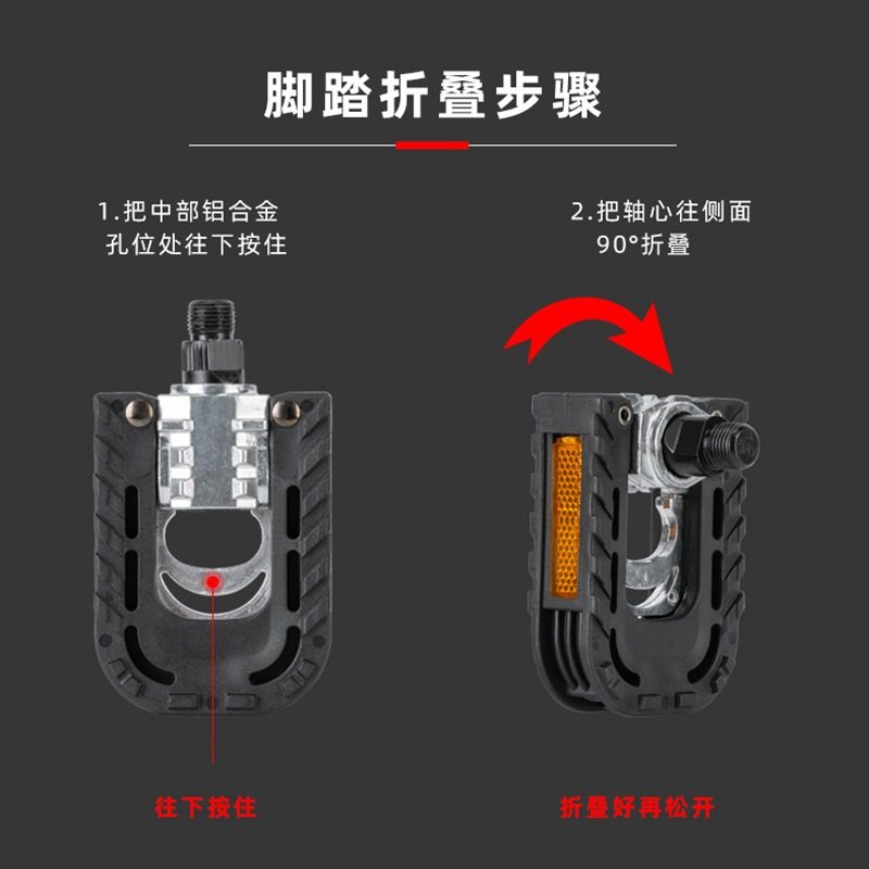 PROMEND自行车折叠脚踏CNC铝合金可折叠脚蹬代驾折叠车尼龙脚踏板