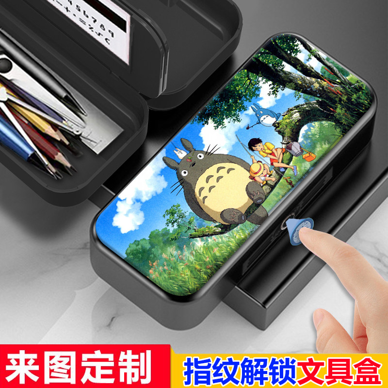 宫崎骏龙猫指纹密码文具盒新款小学生男生多功能大容量铅笔盒女生