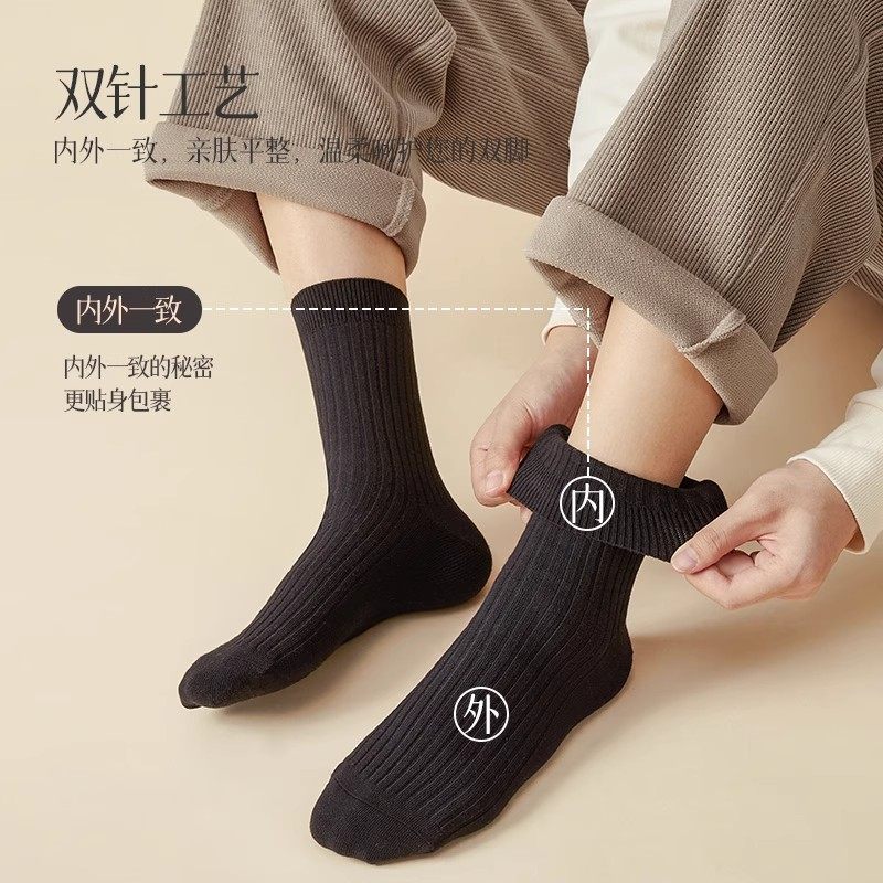 【送3双同款】秋冬新疆棉厚款中筒袜纯棉纱线毛巾底袜子男长袜女