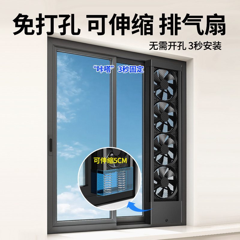 长城免打孔窗户排气扇家用免安装玻璃窗式换气扇排风扇强力超静音