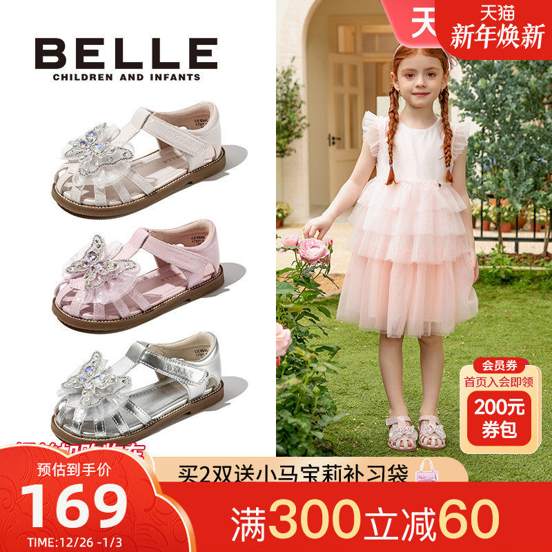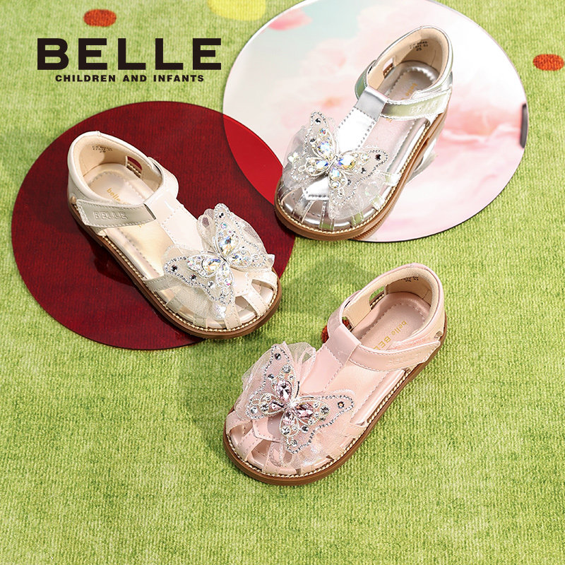 百丽女童凉鞋包头2025夏新女宝软底防滑小女孩时尚蝴蝶结公主凉鞋