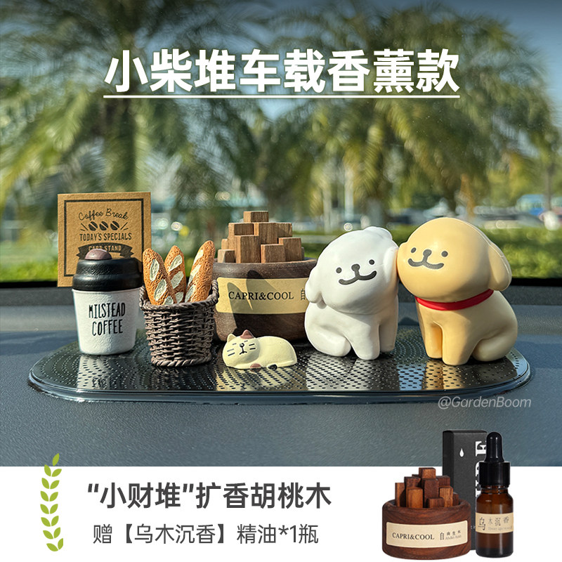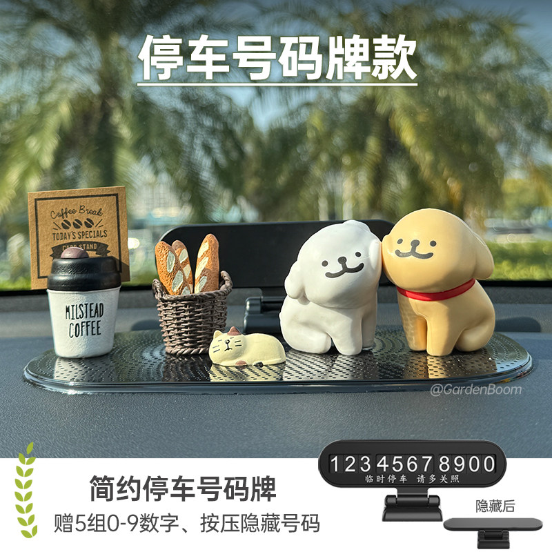 线条小狗汽车内饰品摆件车载香薰停车牌男女生高级感中控台装饰品
