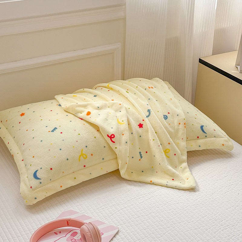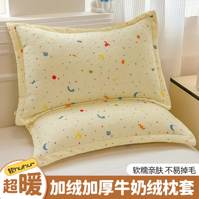 加厚牛奶绒枕套一对装48x74cm冬季保暖珊瑚绒护颈助眠枕芯整套装