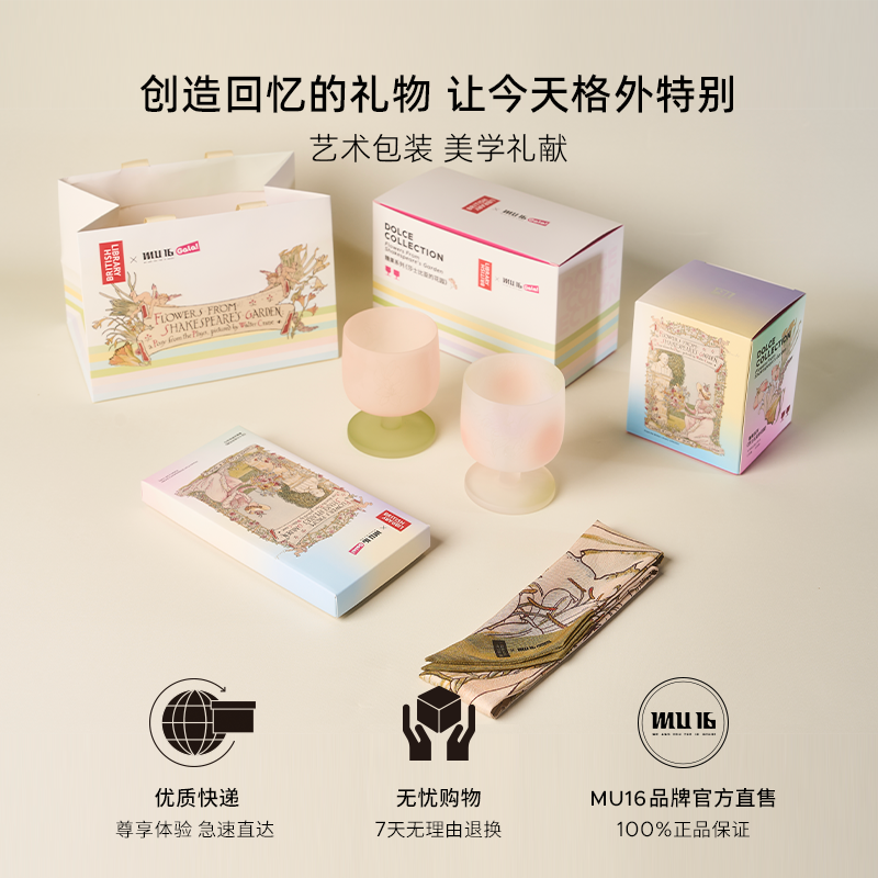 MU16大英图书馆联名高颜值杯子套装礼物高脚酒杯高级感玻璃杯