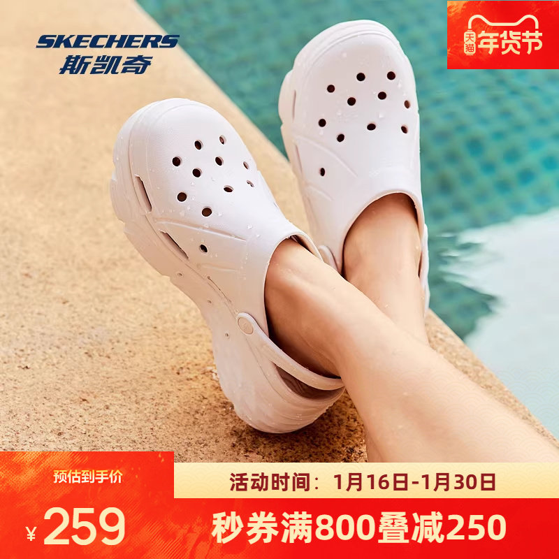 斯凯奇洞洞鞋运动凉鞋女鞋多巴胺拖鞋厚底增高轻便海边沙滩泡泡鞋