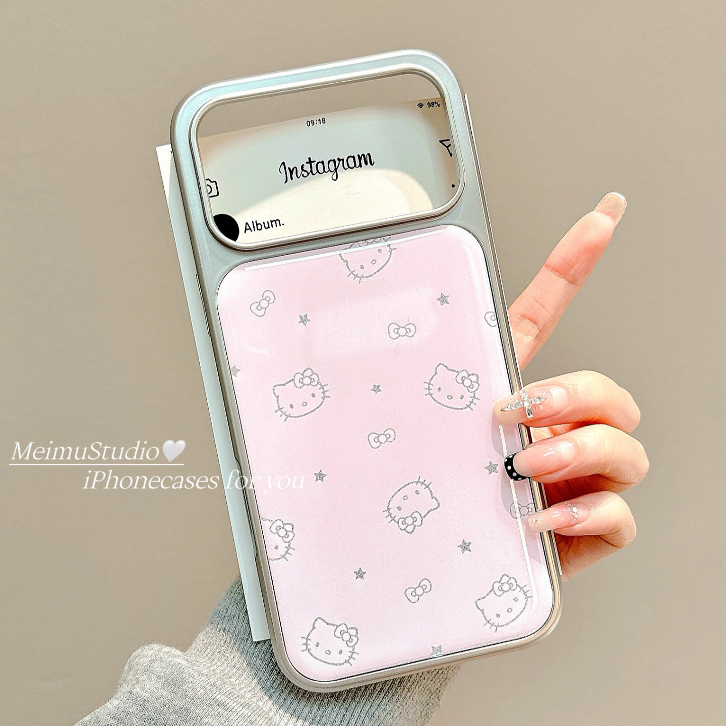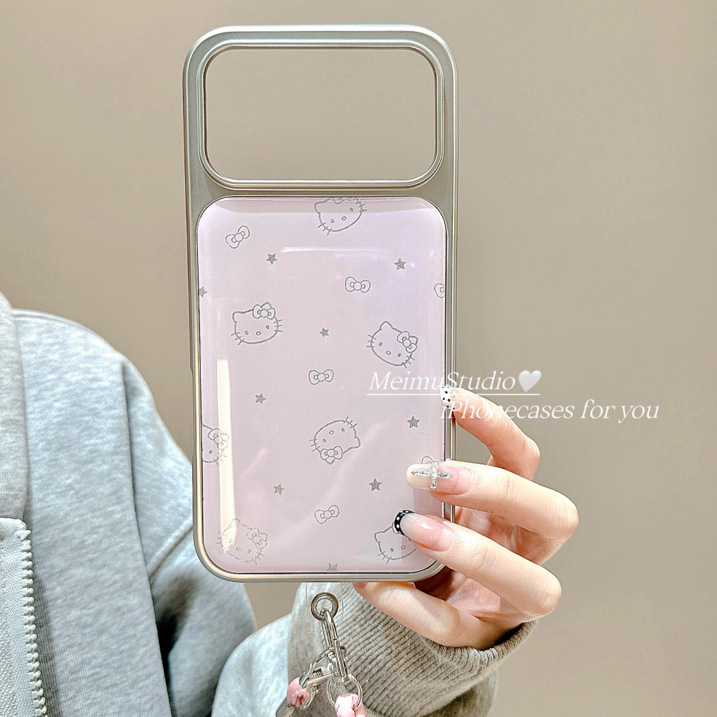 少女粉色电镀银线条可爱KT猫适用苹果手机壳