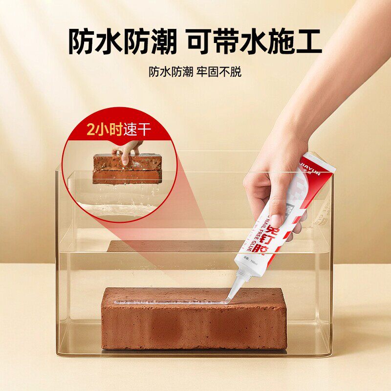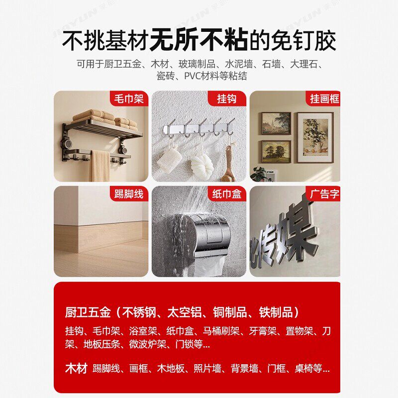 高粘度免钉胶免打孔强力胶水贴墙专用粘得牢金属墙面置物架挂钩镜子画框瓷砖地板踢脚线万能多功能防水家用胶