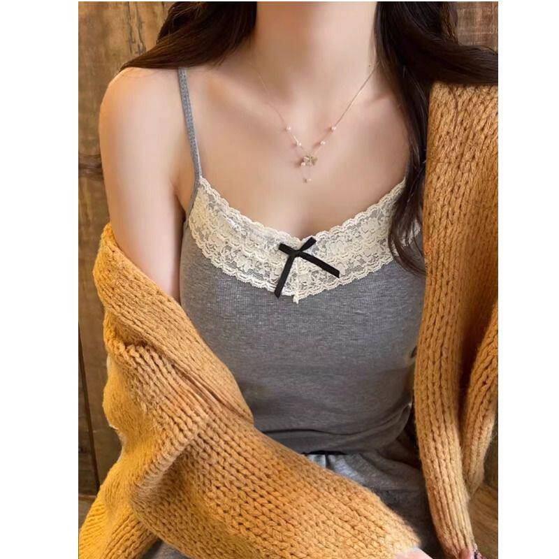 白色吊带小背心女2026新款夏季内搭打底外穿美背蕾丝黑色上衣蝴蝶