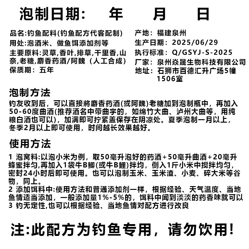 秋冬专用钓鱼中药材配制小药鲫鲤诱鱼饵料药酒人工合成麝香酒泡米